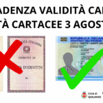 Carta di Identità su modello cartaceo, fine validità il 03 agosto 2026